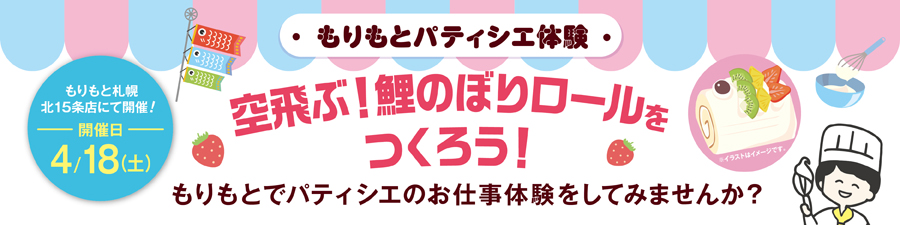 お子様に「空飛ぶ!こいのぼりロール」を作っていただくパティシエ体験となります。