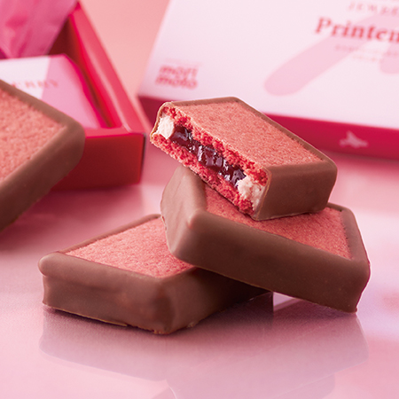 いちごの爽やかな酸味とやさしい甘さのクリームをふんわりブッセでサンド。