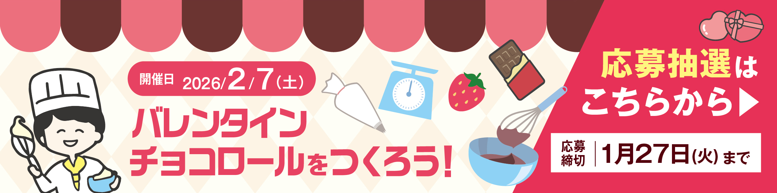お子様に「バレンタインチョコロール」を作っていただくパティシエ体験となります。